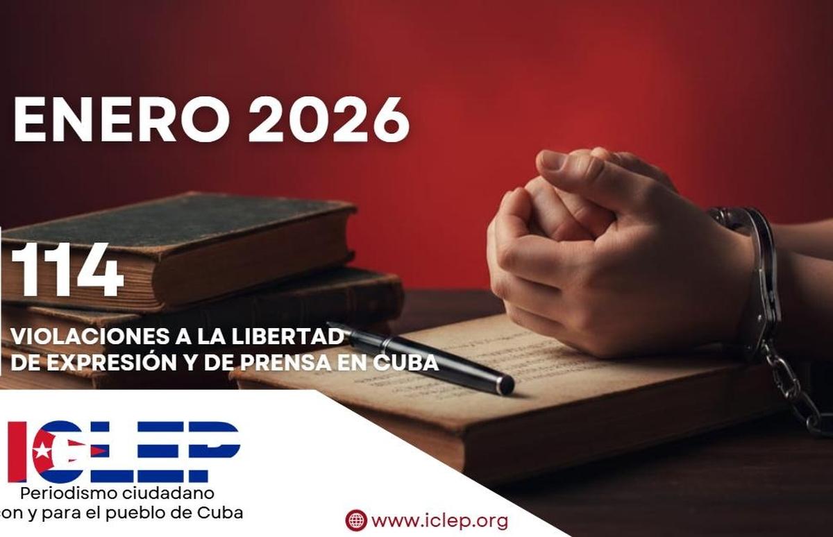 La Habana, 14 de febrero de 2026 (ICLEP).— El Instituto Cubano por la Libertad de Expresión y Prensa (ICLEP) documentó 114 agresiones contra la libertad de expresión y de prensa en Cuba durante el mes de enero de 2026, confirmando un inicio de año marcado por el endurecimiento sistemático del control estatal sobre el discurso público