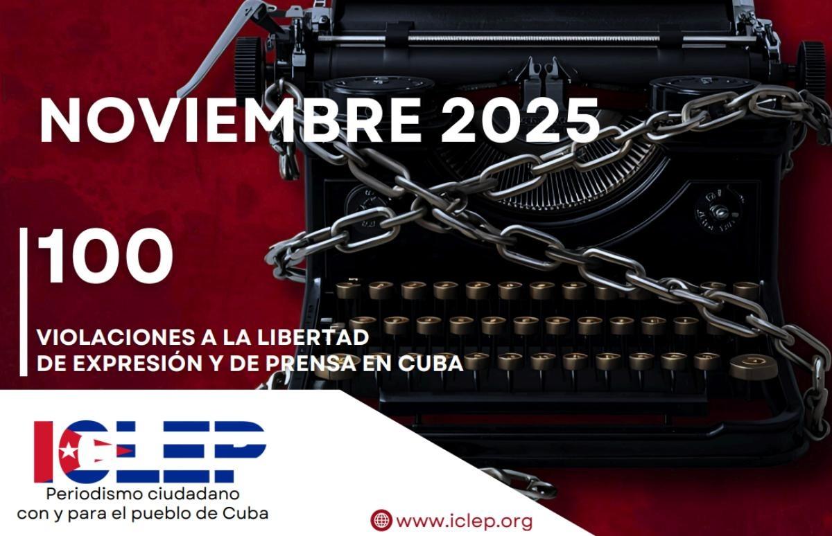La Habana, 5 de diciembre de 2025 (ICLEP).— El Instituto Cubano por la Libertad de Expresión y Prensa (ICLEP) presenta su Informe Mensual correspondiente a noviembre de 2025, en el que documenta 100 violaciones a la libertad de expresión y de prensa en Cuba, una de las cifras más elevadas del segundo semestre del año y una confirmación del recrudecimiento represivo del régimen cubano.